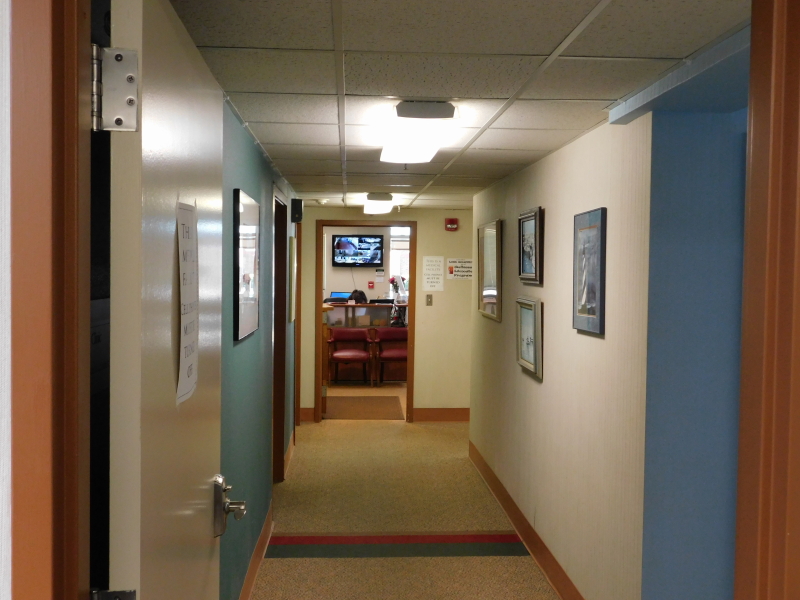 One of several hallways that are used to access examination rooms at the Bradley Free Clinic