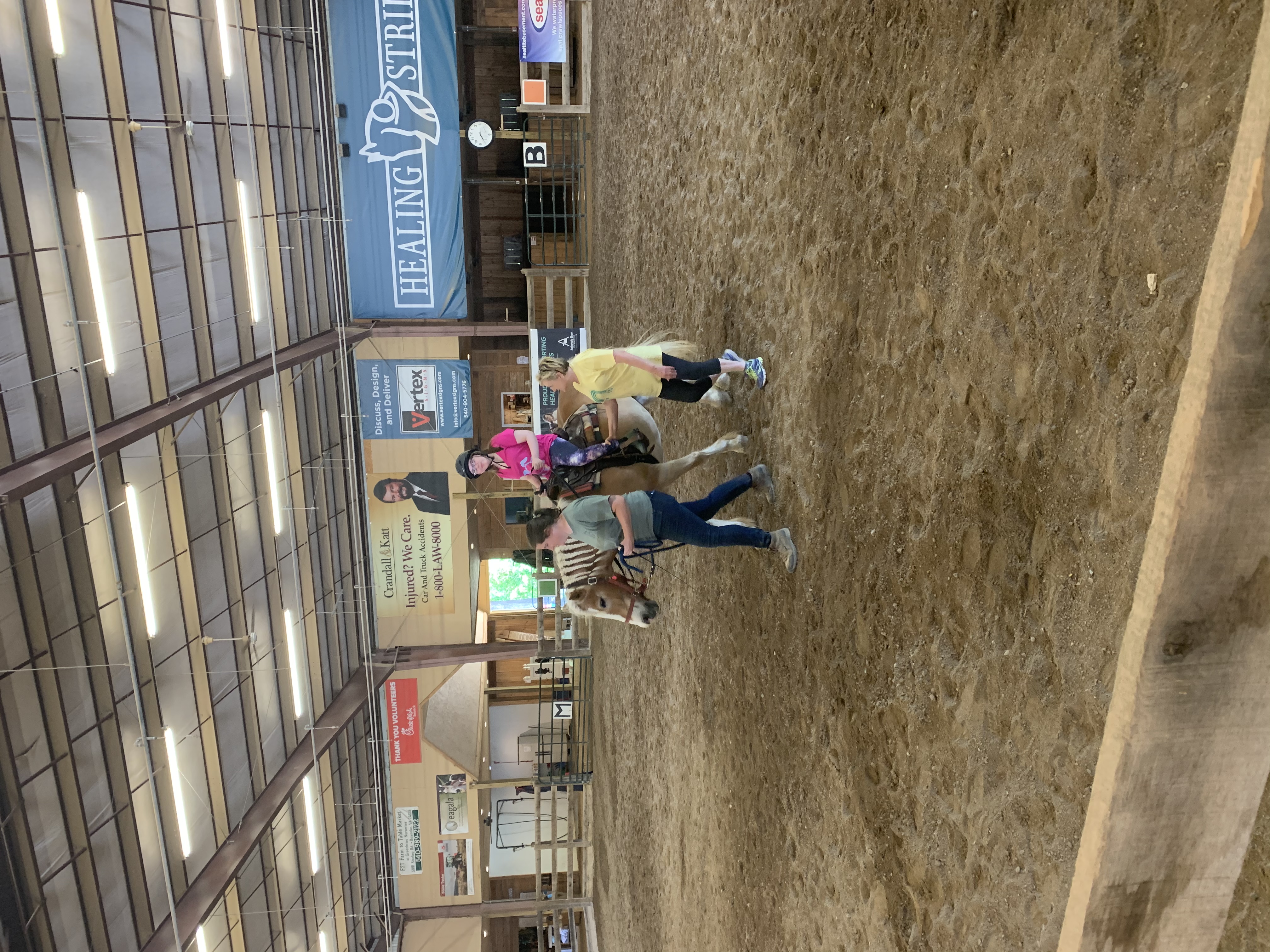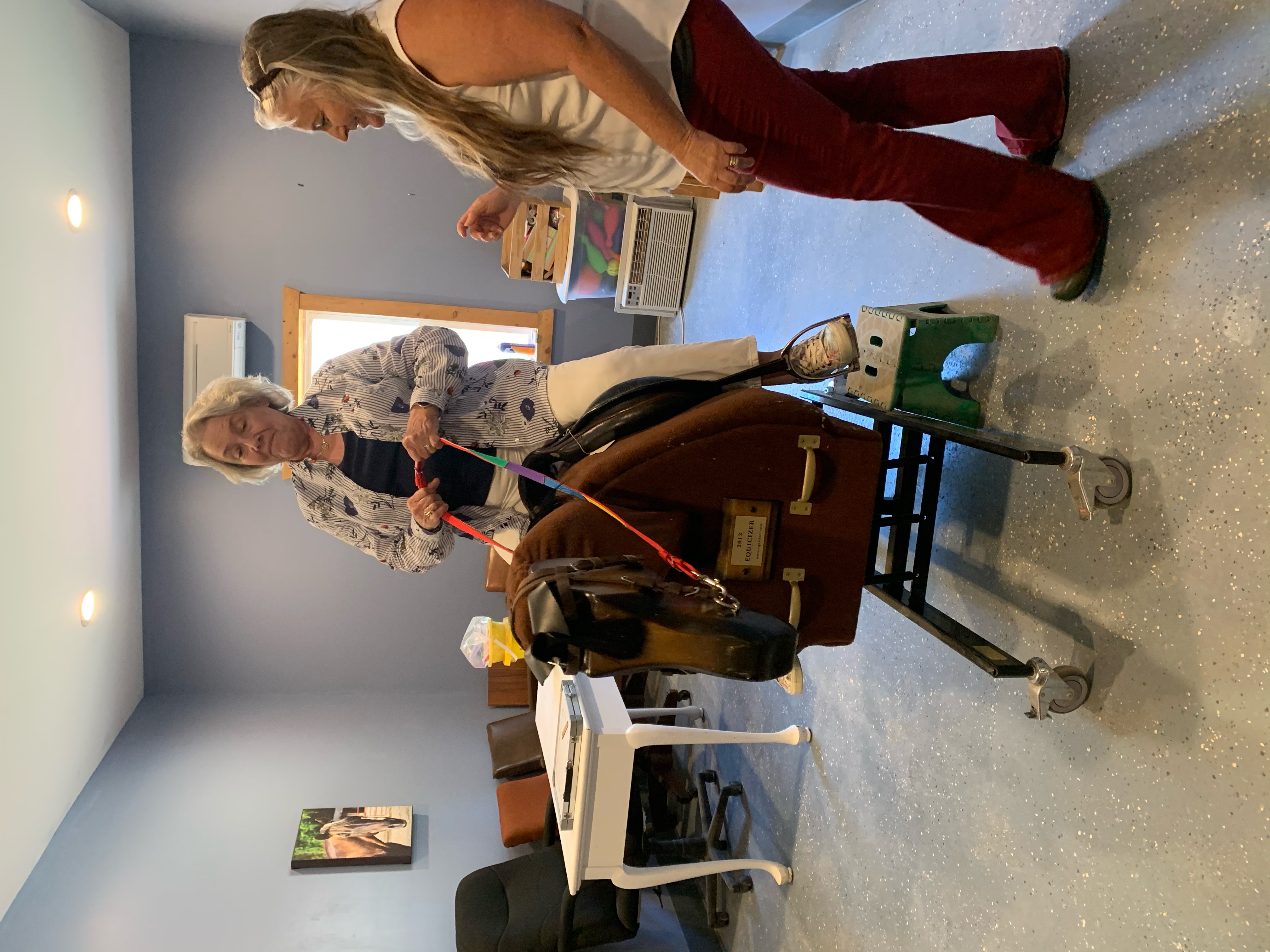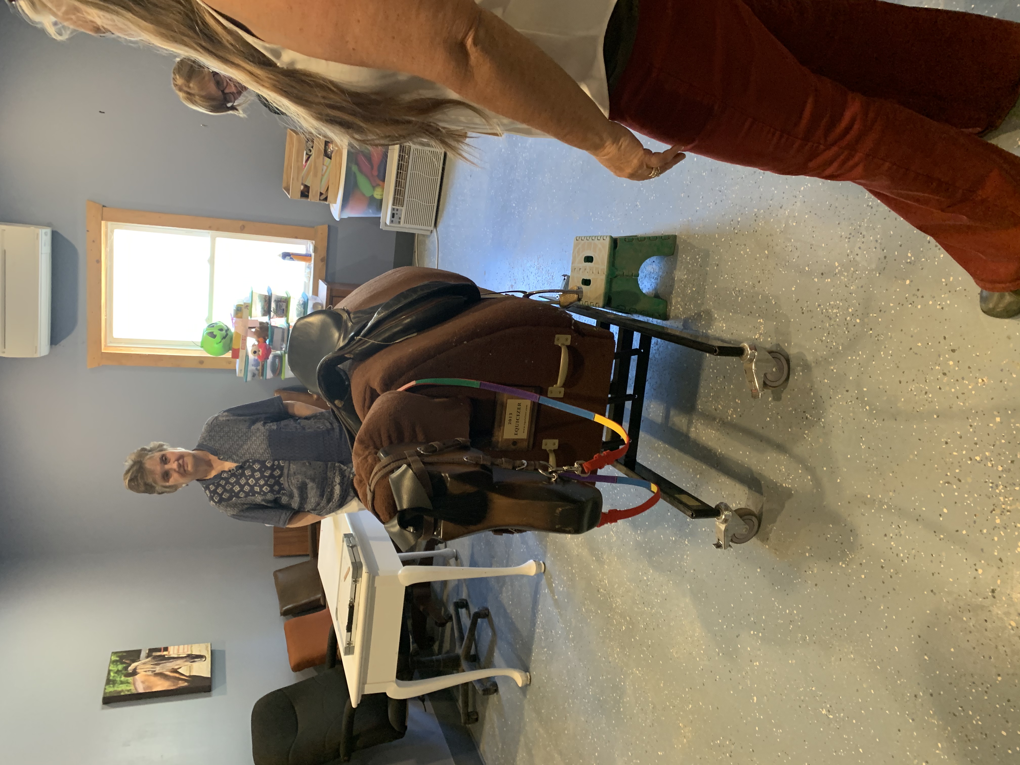 Sherry Myers takes her turn aboard the mechanical therapy horse