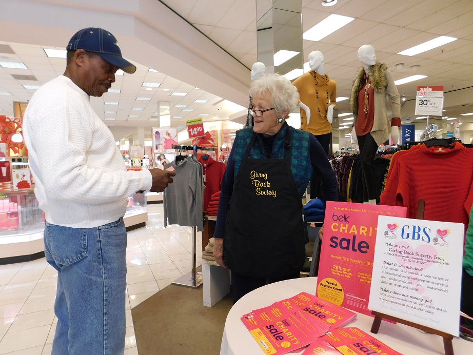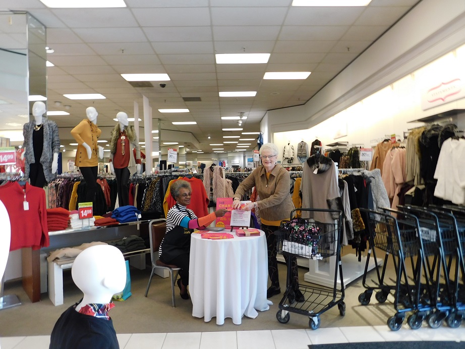 Evie Brandon (r) is getting ready to sell someone a Belk Charity Day ticket