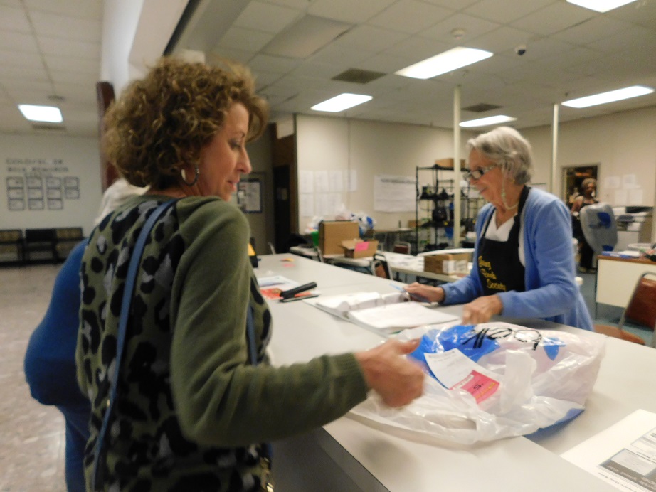 Douglas Powell (l) and Barbara Taylor (r) greet prospective ticket buyers with smiles